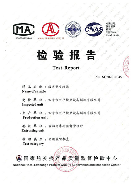 國(guó)家熱交換產(chǎn)品質(zhì)量監(jiān)督檢驗(yàn)中心檢驗(yàn)報(bào)告